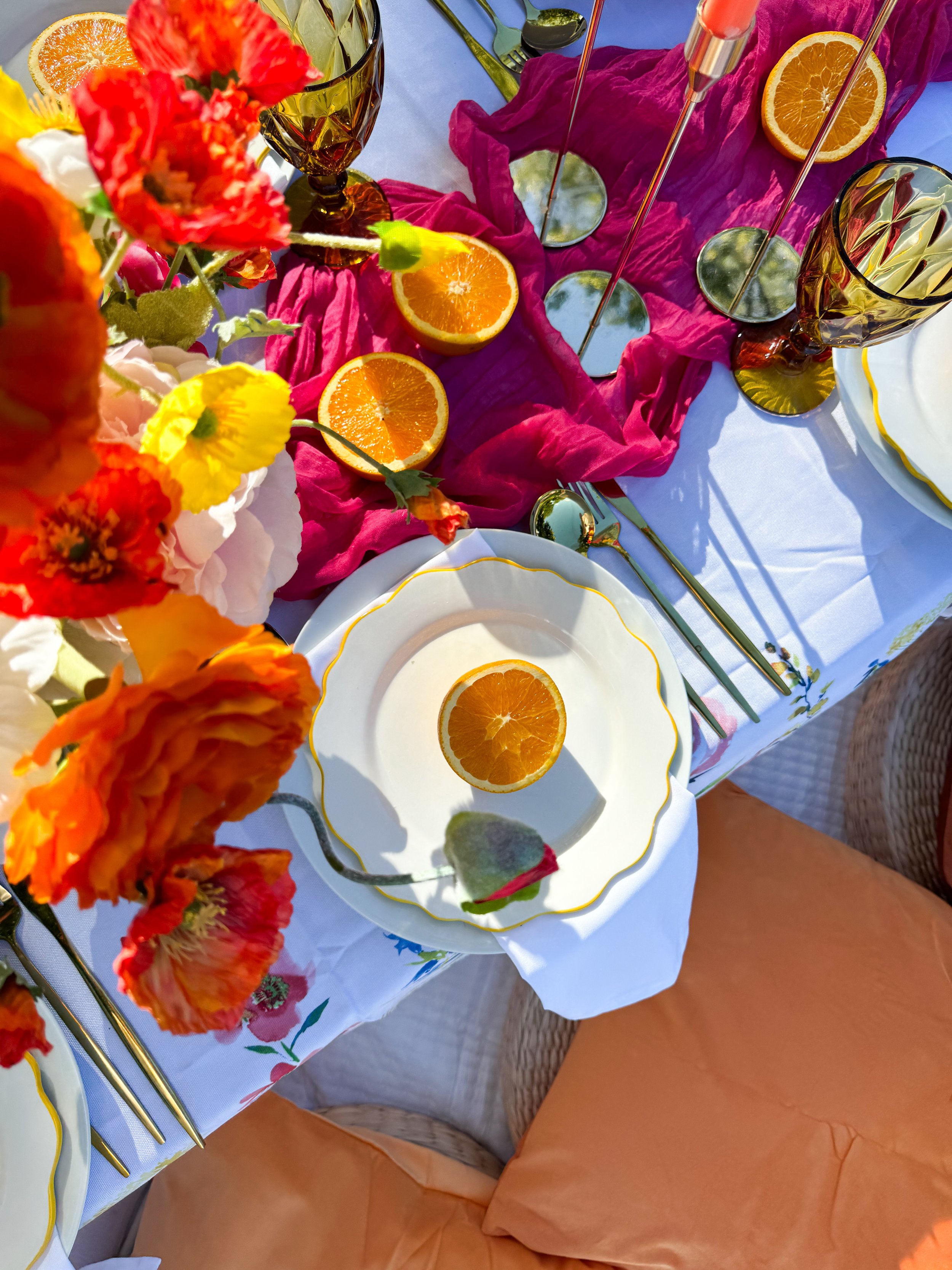 Instagram-worthy styling with picnic low tables, blankets, pillows, lanterns, and high-quality picnic decor;